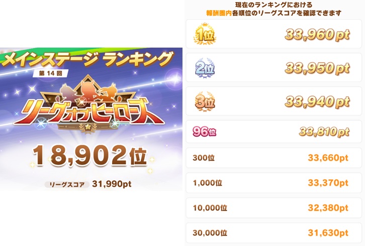 「31,990pt」のリーグスコアは、弊厩舎としては平均以上のスコアです。