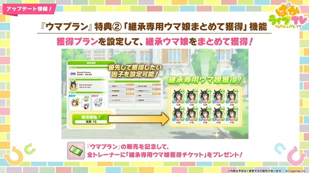 ②「継承専用ウマ娘まとめて獲得」機能